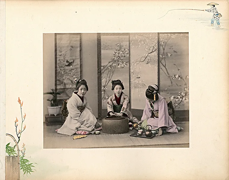 Tirage albuminé original aquarellé à la main au Japon vers 1870-1890.