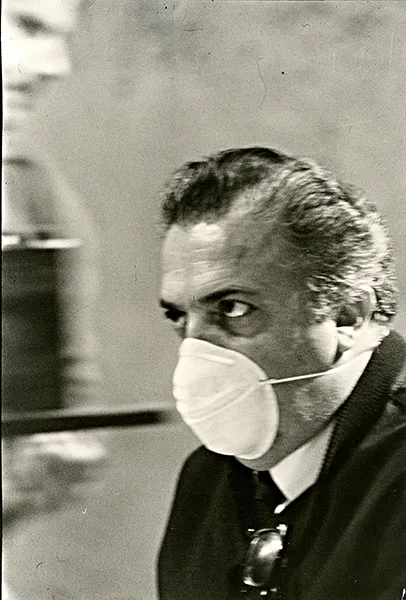 Federico Fellini sur le tournage de « Satyricon », 1969.