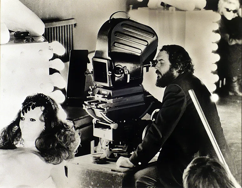 Stanley Kubrick sur le tournage d’Orange Mécanique, 1971.