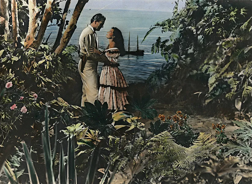 Paulette Goddard et John Wayne dans le film de Cecil B. DeMille « Reap the Wild Wind » (Les Naufrageurs des mers du sud), 1942.