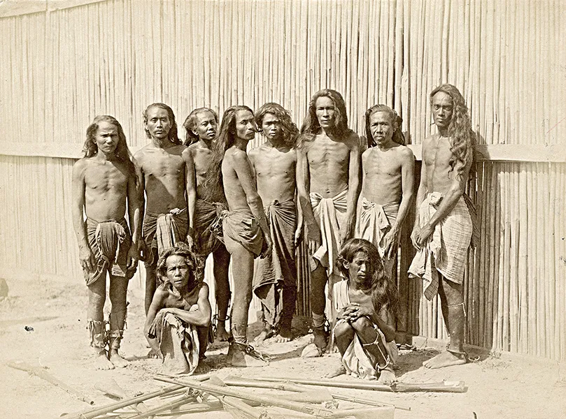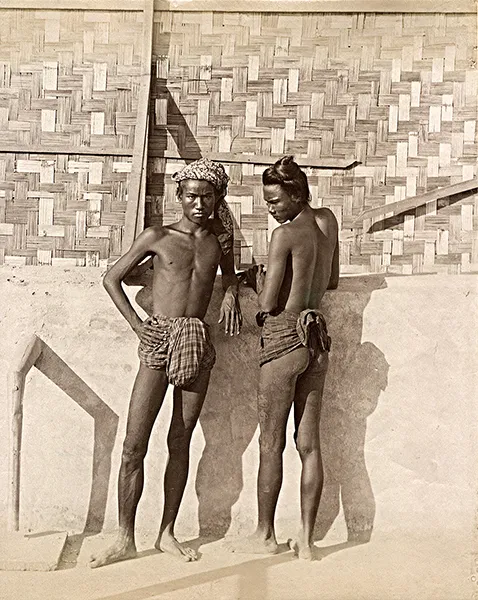 « Dacoits in Mandalay prison in legchains », (bandits birmans enchainés), Birmanie vers 1889.