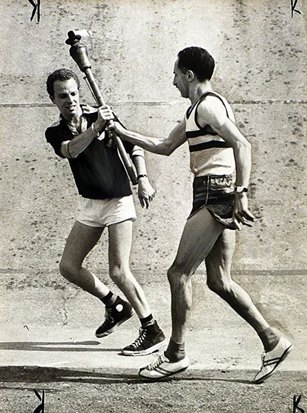 Alain Mimoune et Thierry Rolland lors du prélude T.V des J.O de Tokyo.