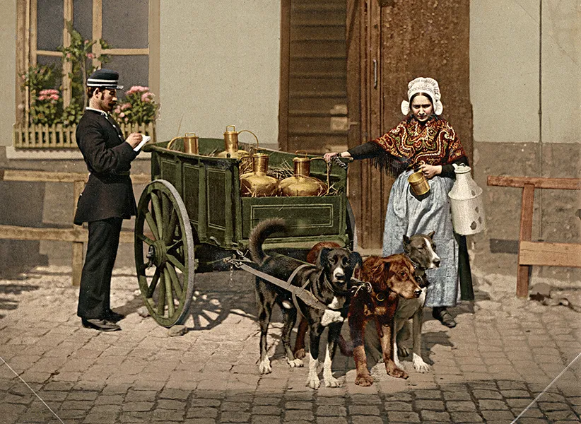 « Anvers livraison du lait par charrette à chiens » (Belgique)