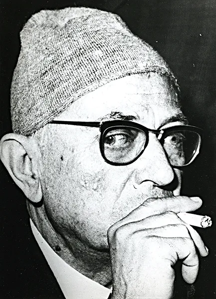 Jean-Paul Sartre au Caire lors de sa rencontre avec le Président Nasser le 10 mars 1967.