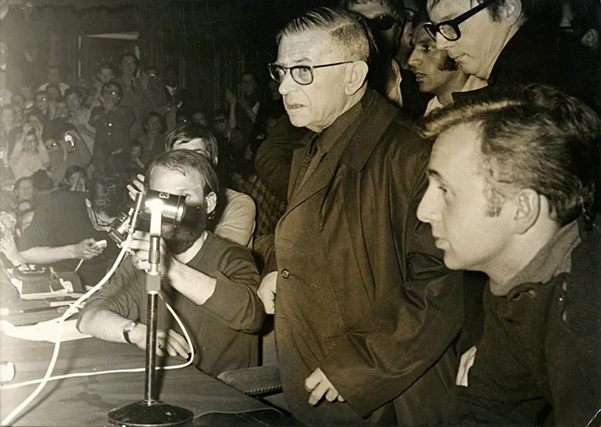 21/05/1968 : Jean-Paul Sartre est venu dialoguer avec les étudiants à La Sorbonne phot. Georges Bendrihem (1932-1995)