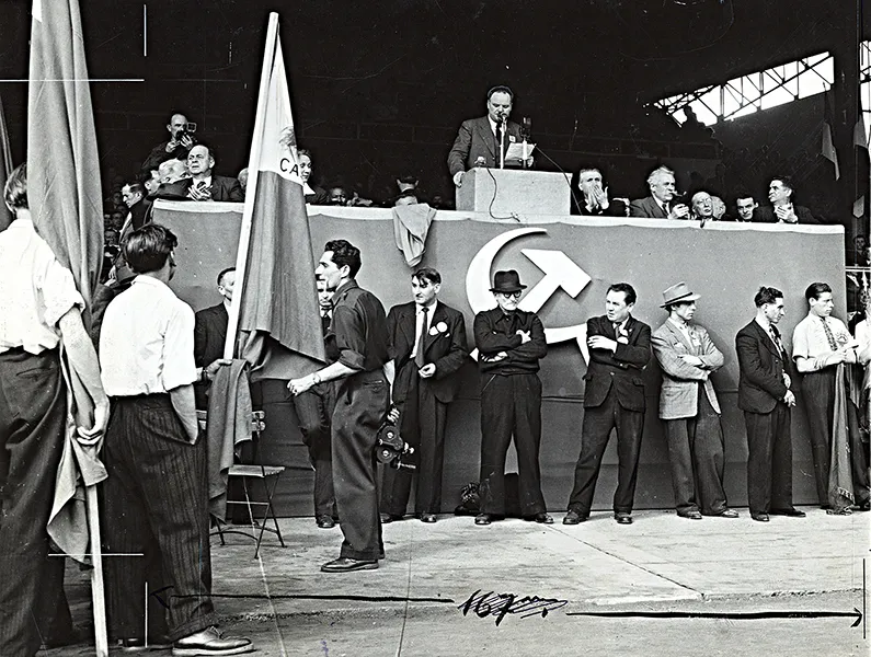 Discours de Maurice Thorez contre le Plan Marshall le 18 avril 1948. Phot. Max Winter