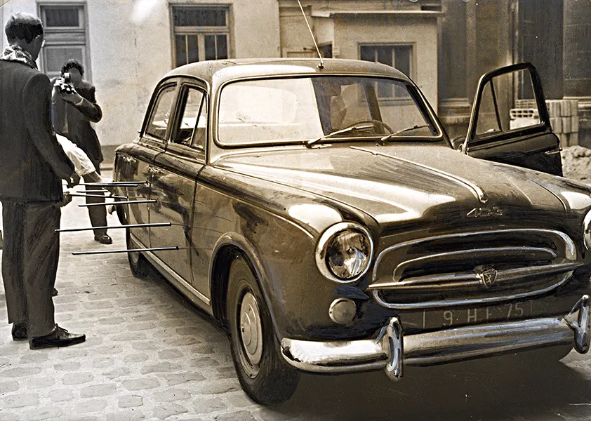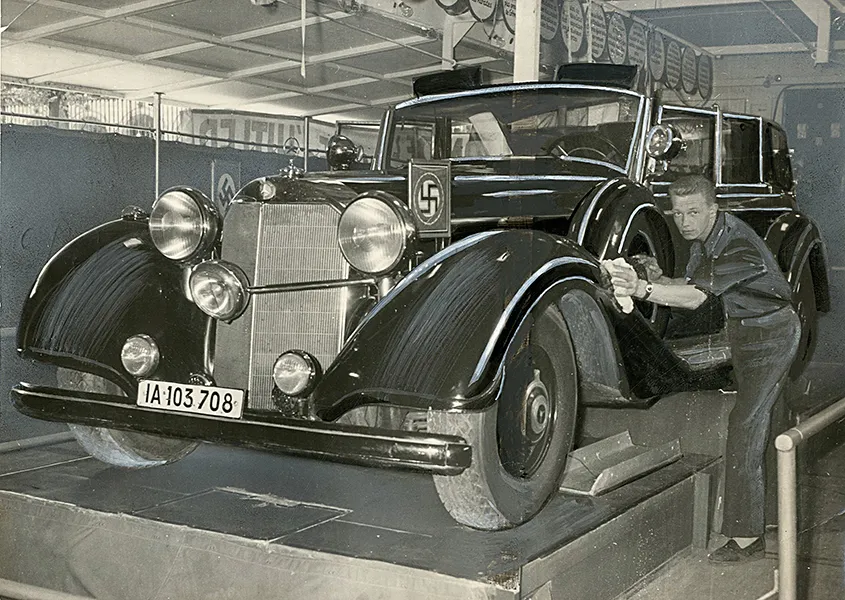 La voiture blindée d’Hitler au musée de l’automobile du Mans. Tirage argentique retouché à la gouache pour parution le 15/11/1963