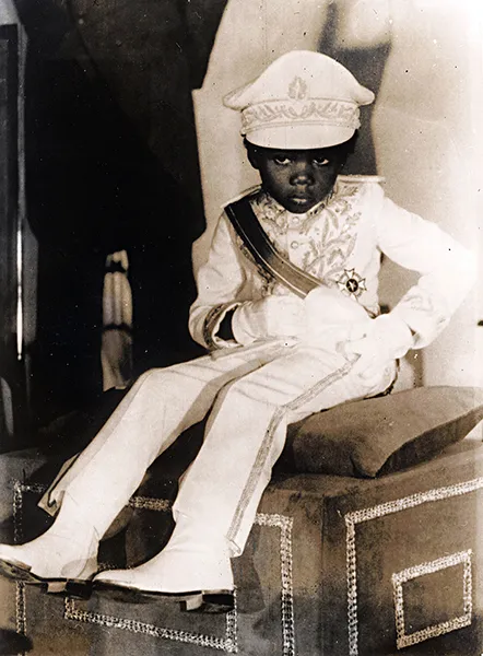 Centre Afrique, le prince héritier, Jean Bedel Bokassa Jr (4 ans ?) dans son uniforme de la marine assiste au couronnement de son père l’Empereur Jean Bedel Bokassa le 12/12/1977.