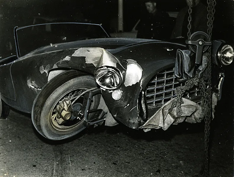 Françoise SAGAN, accident à Deauville, P.L. 25.8.59 – Tirage argentique original retouché à la gouache pour la Presse