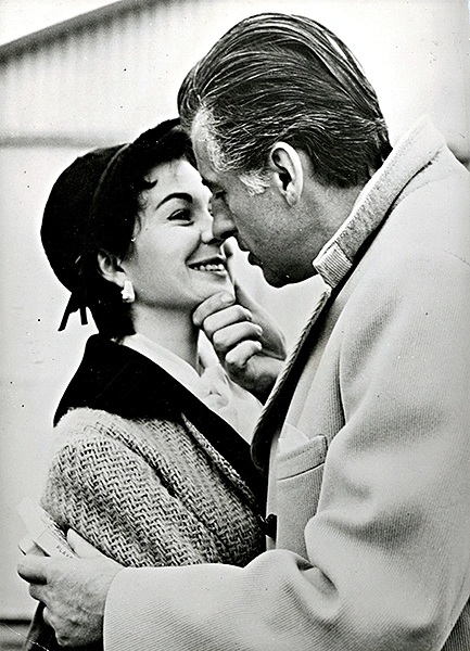 Joan Simmons retrouve son mari Stewart Granger, à l’aéroport de Londres – 1954 –