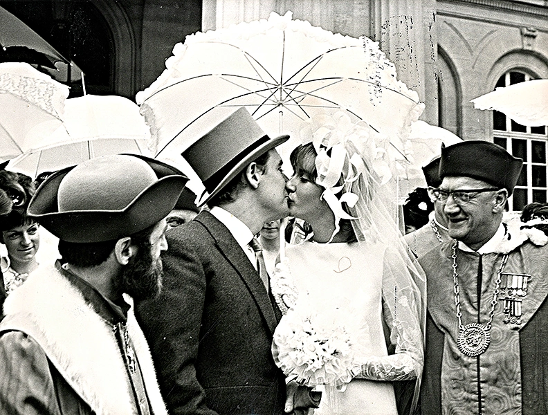 Pierre Perrin et Dominique Sabourdin se marient en présence de deux représentants du Chapitre Artistique de la Butte de Montmartre, Paris le 08 juin 1967 –