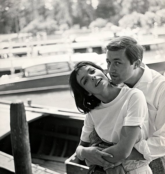 L’actrice et chanteuse Marie Laforêt avec son futur époux le réalisateur Jean-Gabriel Albicocco à la Mostra de Venise, 1961 –