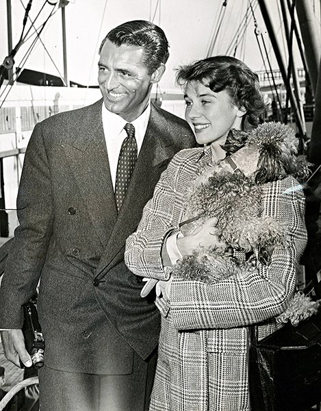 « La star Cary Grant, est accueilli à son retour à Los Angeles, Californie, par l’actrice Betsy Drake. L’acteur a déclaré aux journalistes qu’il avait demandé à mademoiselle Drake de l’épouser, mais qu’elle n’avait pas encore accepté. »